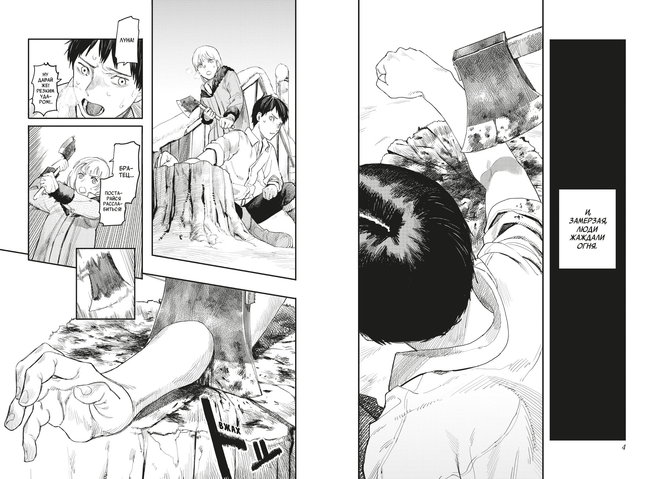 цитата«Слишком страшная зима, \ Без надежды на лето. \ Моё сердце – пожар, \ Ты помни об этом. \ Отсечённой рукой \ Спасти прохожих. \ Сердце просит огня, \ Без него не может…» Серию «Человек-бензопила» мы встречали строками Пастернака, а дебютную серию Тацуки Фудзимото приветствуем фантазией на мотив хорошо забытой песни, которая по настроению и деталям точно попадает в ледяное безумие и пылающий ужас манги «Огненный удар». Первая книга уже в печати!