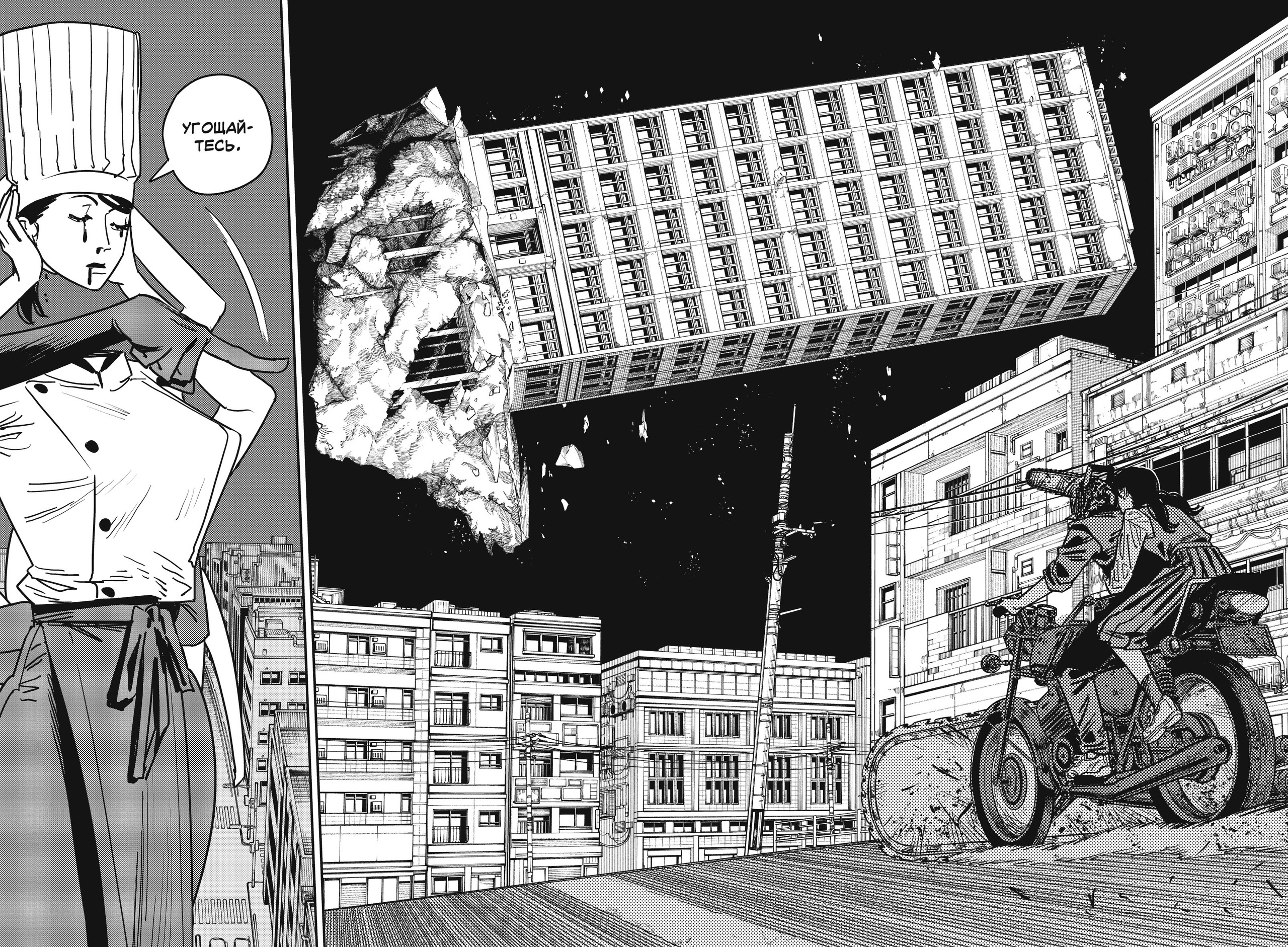 цитатаВозвращаясь домой после неудавшегося свидания с Дэндзи, Аса внезапно видит, как из окон многоэтажного дома выпрыгивают люди, насмерть разбиваясь о землю. А затем перед девушкой предстает зловещее существо, ответственное за происходящее. Оно сообщает, что этим вечером собирается готовить ужин для обитателей ада и главным блюдом станет Аса – изысканное сочетание человека и демона-войны…