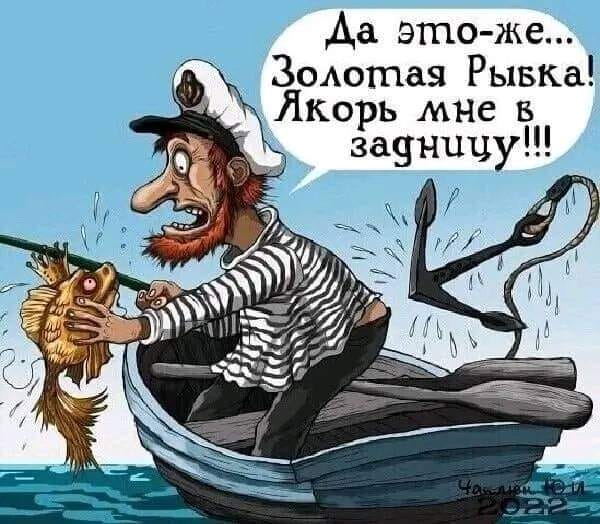 В классической версии анекдота юнга пожелал, чтобы исполнилось первое желание боцмана. Боцман вышел на палубу и, как всегда, сказал «ну и погодка, сто ... и якорь мне в...»
