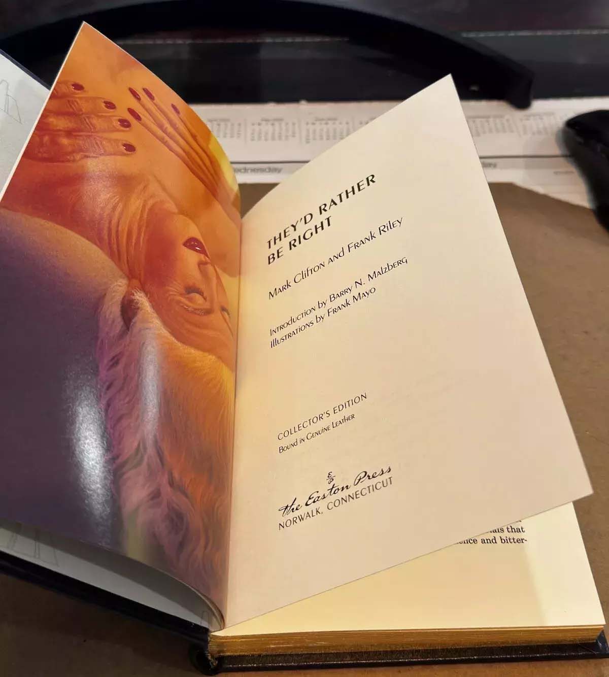 В 1990 году роман «Скорее всего они правы» переиздают в шикарной серии от Easton Press, той, где все книги в коже и с трёхсторонним золотым обрезом. Кожа не дает сделать приличного рисунка на твердых корках переплета,