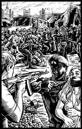 С такими вот начальными условиями сюжет начинает раскручиваться всё стремительнее и стремительнее. Безусловно, появление шамана, а вслед за ним и полковника Кихунгебе во главе вооруженной до зубов банды заставляют события наслаиваться, как банкноты на выходе счетной машинки, причем каждое предыдущее служит своеобразной пружиной для следующего. Казалось бы, такое количество напастей, во-первых, просто невозможно, а во-вторых, не по силам обычному человеку; но потом вспоминаешь о проклятии Бунда-Бваке и стойкости русского характера и поневоле смиряешься с буйством авторской фантазии. <…>