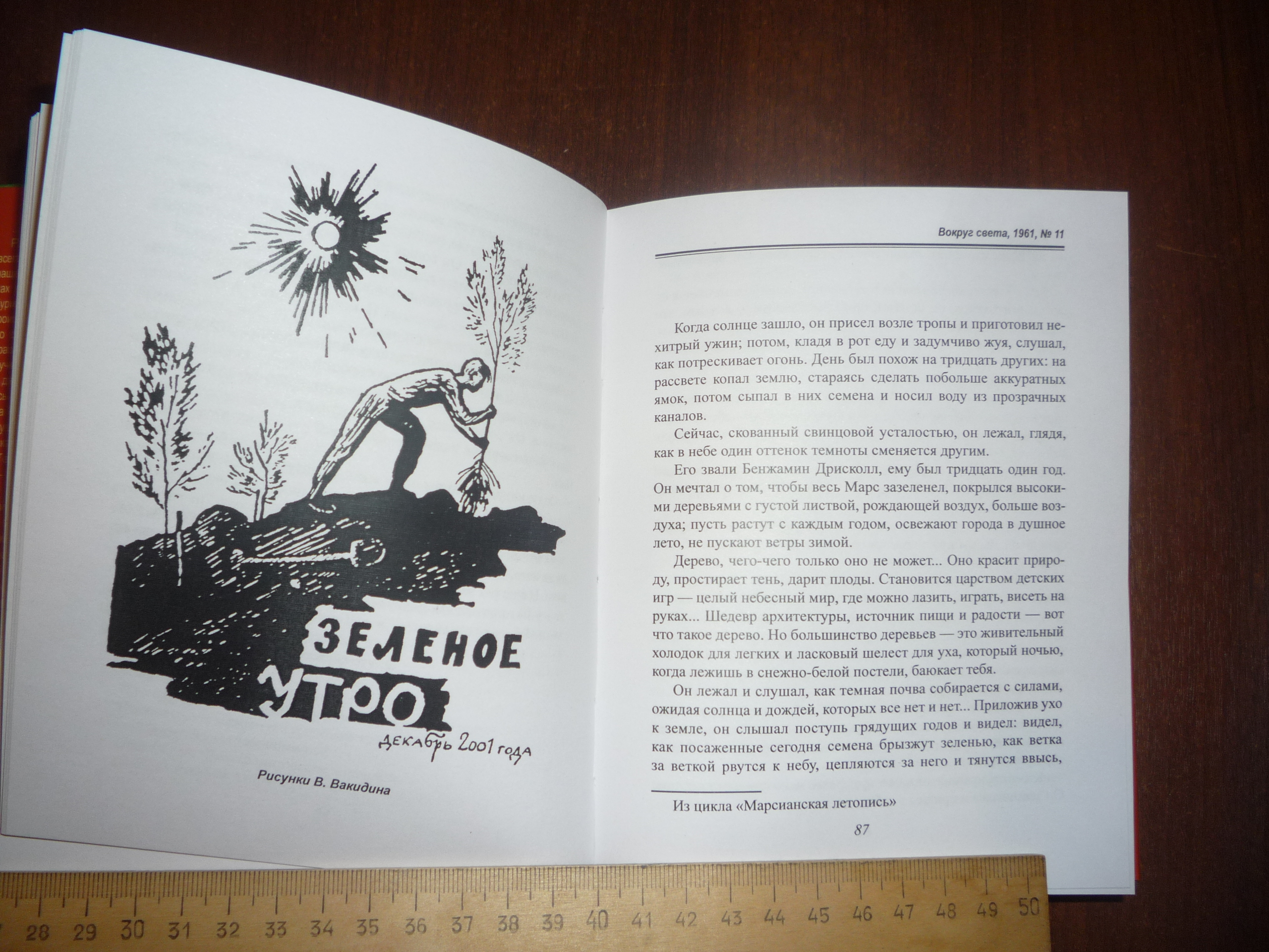 «Когда мне было немного за двадцать, я начал писать для Weird Tales. Я продавал им свои рассказы, получая за них по двадцать-тридцать долларов за штуку. Вы знаете все, что есть в «Марсианских хрониках», кроме пары рассказов, изначально проданных по сорок-пятьдесят долларов за каждый».