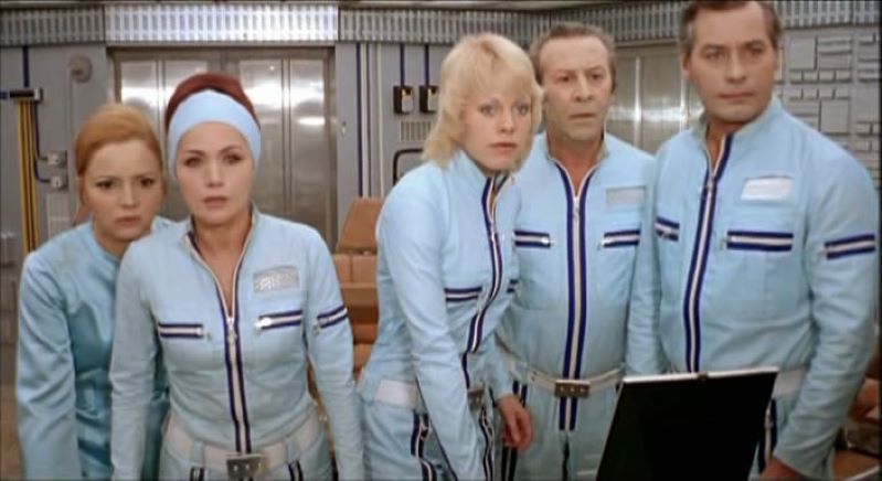 Удивительно, что этот фильм до сих пор не поставили рядом с «Шоу ужасов Рокки Хоррора» (Rocky Horror Picture Show”) как наилучшую пародию на каноны научной фантастики. Возможно, это связано с тем, о нем слишком мало знают, а может потому, что пародирование здесь довольно-таки непреднамеренное. Сюжет (малосущественный) основывается на экспедиции астронавтов на чужую планету с целью выяснения причин отправки оттуда сигнала SOS. Там он находит туземцев-гедонистов, которые оказываются Зловредными Захватчиками. Их возглавляют люди с прическами «под ГДР-овского футболиста» – грива сзади, усы спереди. Гвардия удивляет своими нарядами – сетчатыми футболками, надетыми на волосатую грудь, и латексными шортами. Главный злодей ходит в халате. Устроенная аборигенами в честь прилетевших астронавтов оргия напоминает ГДР-овскую дискотеку, но фильм также предоставит зрителям кадры обнаженного женского тела во время длительного космического душа. И во всем этом еще и наш Леон Немчик играет роль веселого астронавта. Нет, что ни говорите, это обязательно нужно увидеть!