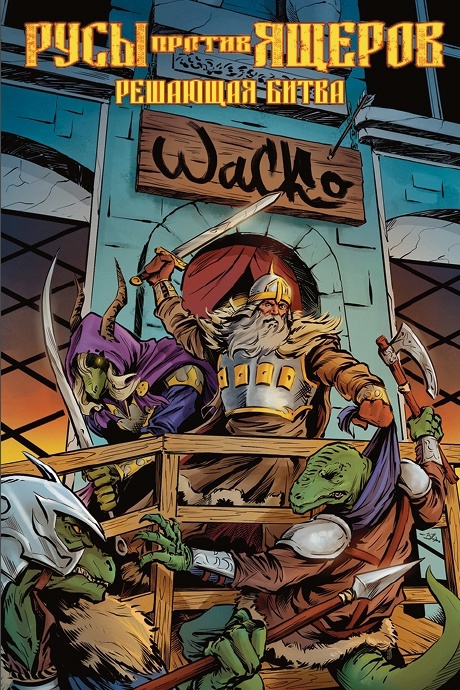 цитата«Хитовая серия комиксов, основанная на нашумевшей видеоигре «Русы против Ящеров», возвращается в виде сборника! Архивы рассекречены и теперь весь мир знает как о кровопролитной войне русов с ящерами, так и о славных подвигах богатырей. Вас ждут сражения на славянской земле, битвы под палящим солнцем Африки и невероятные приключения на Луне. Куда только не занесло Дрочеслава Сурового, Всеслава Чародея, Радислава Багирова, Мстислава Дуболюба и просто Виктора. Так откройте же для себя эти легендарные сюжеты!»