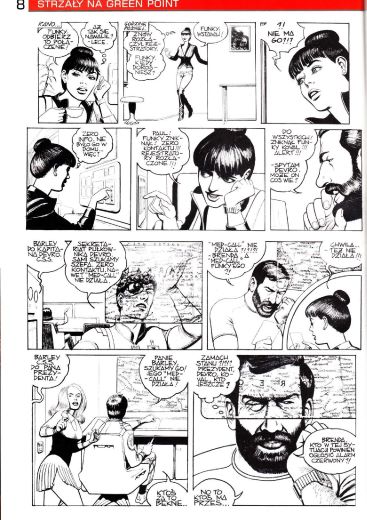 Разумеется, я оценил достоинства комикса. Отличные рисунки, динамичное кадрирование, острый сюжет. Я дал высокую оценку великолепной работе БОГУСЛАВА ПОЛЬХА по графическому построению мира будущего. Современные, элегантные транспортные средства, оригинальные по своим очертаниям. Фирменные одеяния -- аккуратное сочетание современных стилей с униформой СС. Детали заполнения панелей: оружие, устройства, надписи. И конечно же, женщины -- мечта подростка. Все это строило целостный, последовательный и впечатляющий мир будущего.