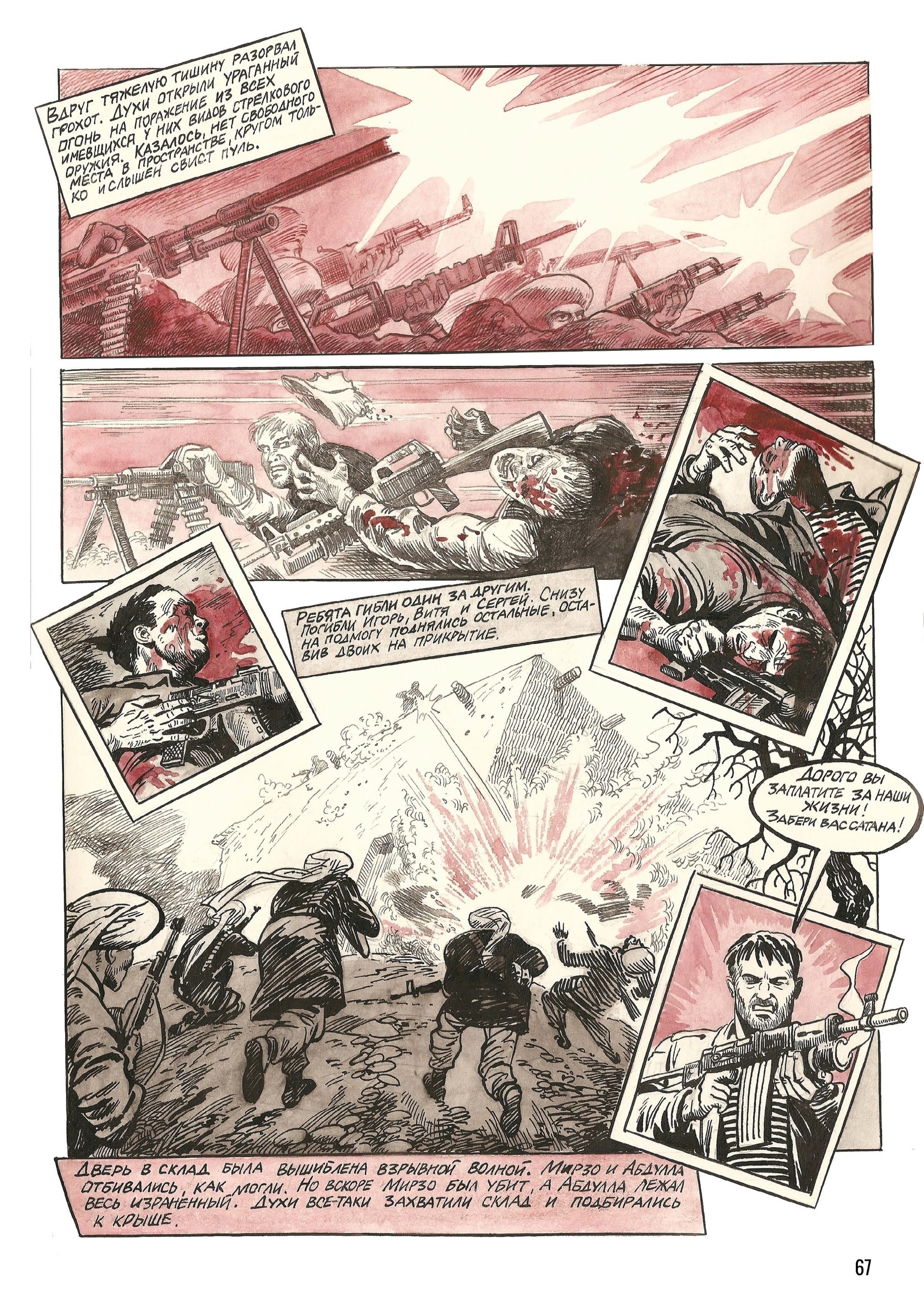 цитата«Красная кровь» — единственный в России комикс на тему Афганской войны 1979-1989 годов. Сюжет основан на воспоминаниях ветерана боевых действий Игоря Ермакова и его сослуживцев. Это история героя, воплощающего в себе лучшие черты человека, считающего, что он воюет за правое дело.