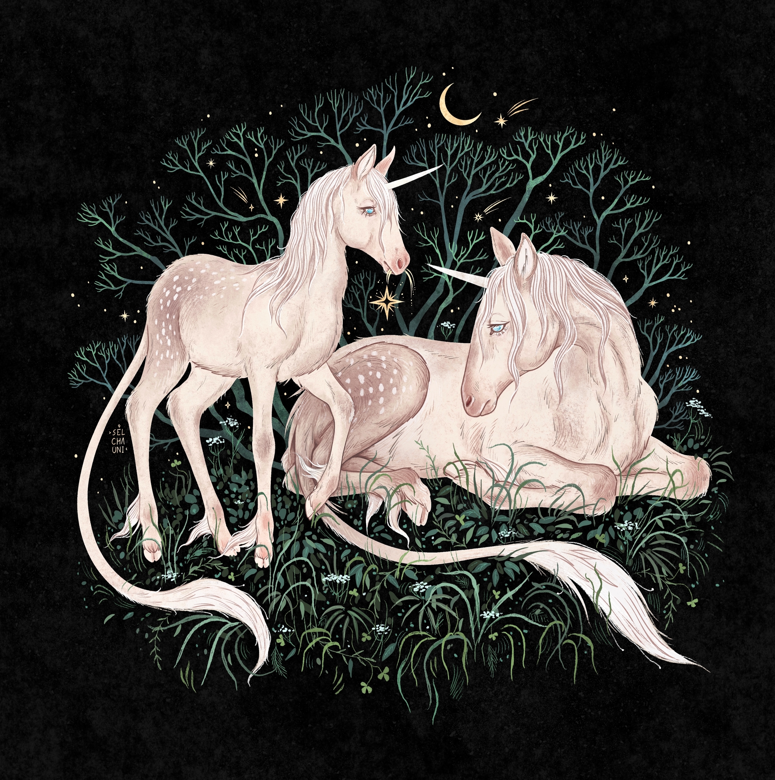 цитатаИллюстрации Selcha Uni — это мир уютной тьмы, где волки знают древние заклинания, а звезды падают прямо в чашку чая. Она верит, что магия — не в ритуалах, а в умении замечать, как дрожит паутинка на рассвете или как светятся глаза лисы в сумерках.