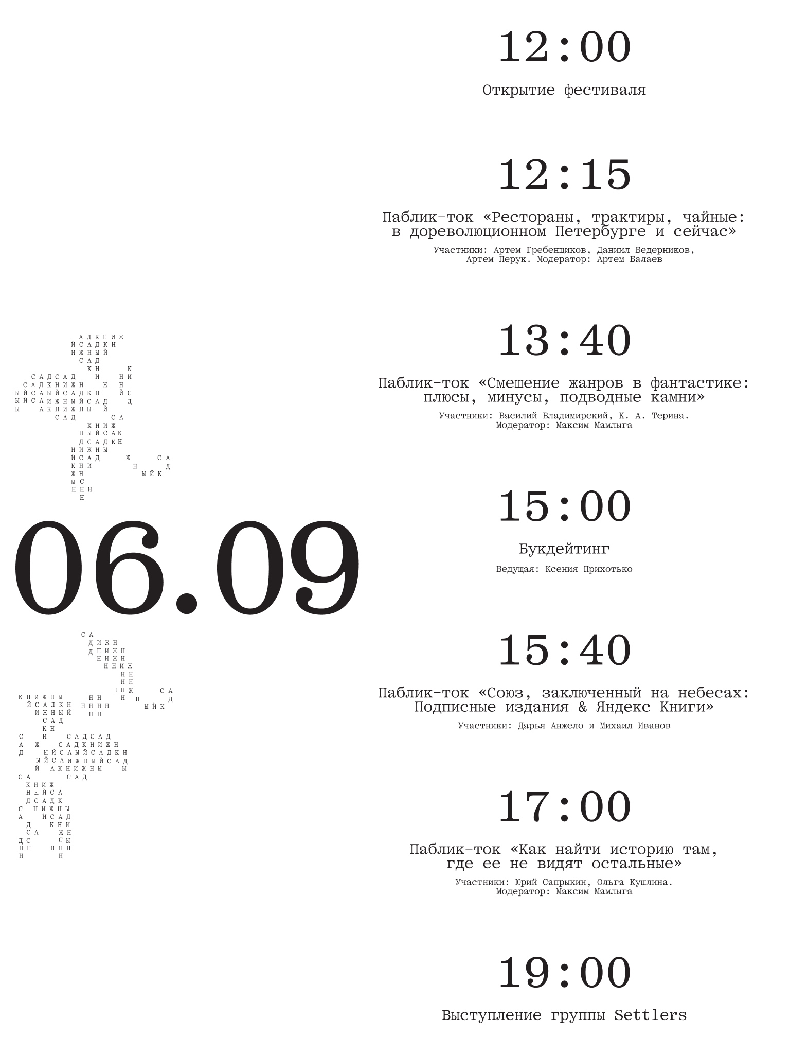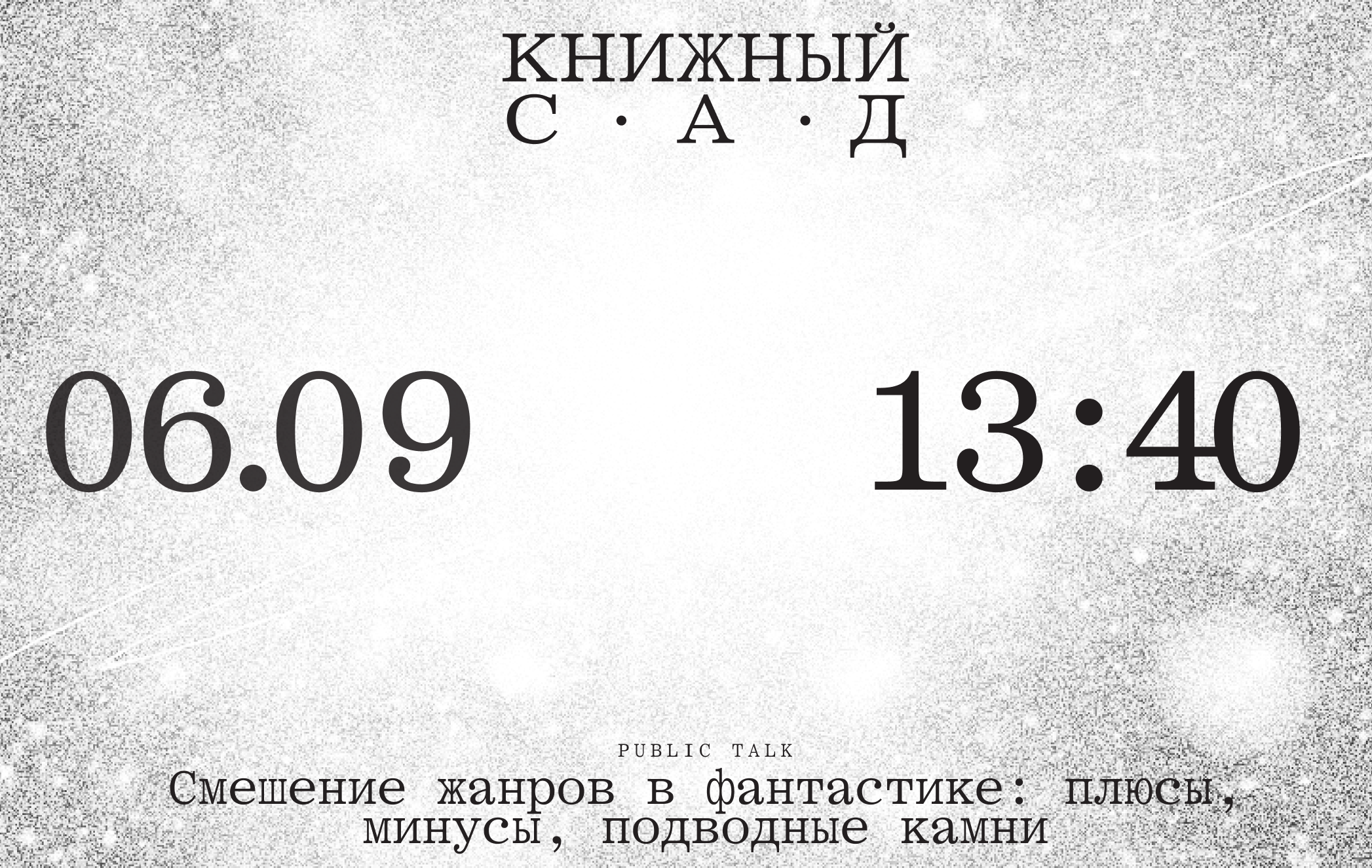 Не знаю уж, будет ли это здесь кому-то интересно, но в эту субботу, 6 сентября (то есть уже завтра) в 13:40 на фестивале «Книжный сад», организованном «Подписными изданиями и «Яндекс.Книгами» будем беседовать с К.А.Териной на тему «Смешение жанров в фантастике: плюсы, минусы, подводные камни». Модерировать нас будет Максим Мамлыга. Место действия – город Санкт-Петербург, Итальянский сад, это сразу за «Подписными изданиями».