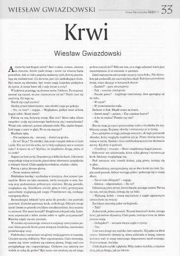 15. 3. Рассказ “Krwi/Крови” написал Веслав Гвяздовский/Wiesław Gwiazdowski (стр. 33–36). Иллюстрации ТОМАША НЕВЯДОМСКОГО/Tomasz Niewiadomski.