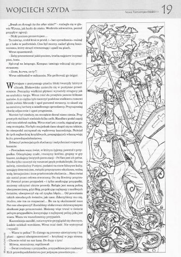 Надо сказать, что этот известный ныне в Польше писатель дебютировал в журнале “Nowa Fantastyka” в ноябре 1997 года рассказом “Psychonautka/Психонавтка” и к настоящему (имею в виду март 2011 года) времени опубликовал в нашем журнале 11 рассказов и 1 повесть (см. 11/1997, 10/1998, 1/1999 (2), 1/2001, 4/2001, 8/2001, 1/2002, 2/2002, 4/2003, 2/2009, 3/2010). Подробности можно узнать, если пройти в этом блоге по тэгу «Шида В.»