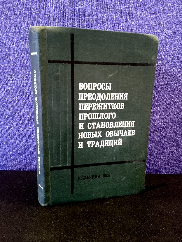 Сборник имеет более полное название «Вопросы преодоления пережитков прошлого в быту и сознании людей и становления новых обычаев, обрядов и традиций у народов Сибири» Вып.I, и содержит в себе материалы научно-практической конференции, состоявшейся 22-26 ноября 1966 г. в г. Улан-Удэ. Выпущен он был под эгидой Сибирского отделения Академии наук СССР, а помимо различных партийных работников, находившихся в тесном взаимодействии с учеными на почве преодоления пережитков, в редакционной коллегии присутствовали такие именитые исследователи, как Окладников, Элиасов и Гурвич, а также известный этнограф бурятского шаманизма Михайлов и востоковед Лубсанов.