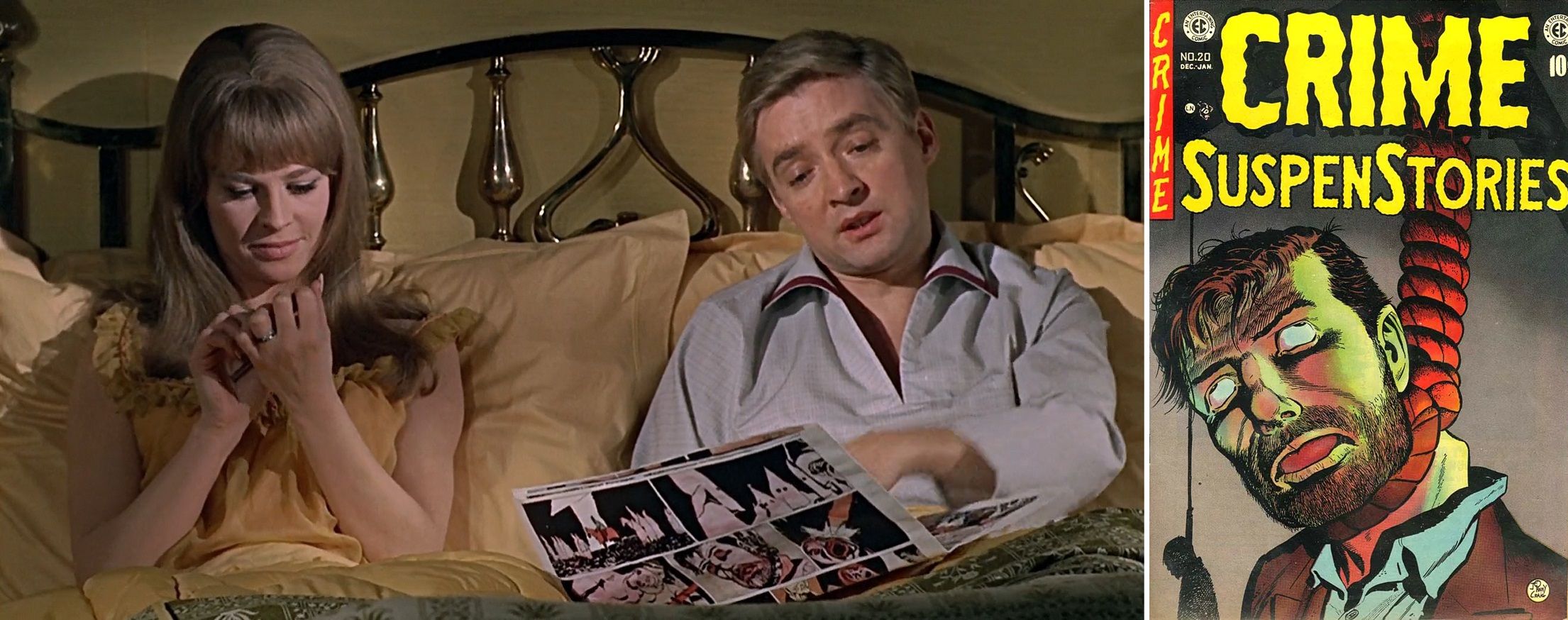 Для этого реквизита была использована знаменитая обложка 20-го выпуска «Crime Suspen Stories» рубежа 1953 и 1954 годов.