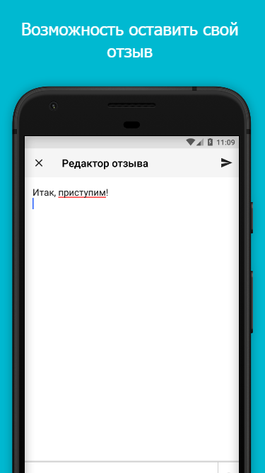 Отдельного упоминания заслуживает редактор. На данном этапе развития приложения он позволяет написать отзыв к произведению, а также поддерживает работу с разрешенными тегами и предпросмотр отзыва.