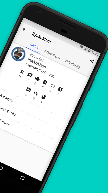 Помимо прочих возможностей доступен просмотр своего профиля и профилей других пользователей. В первом случае вы также можете управлять своими оценками и просматривать список оставленных отзывов.