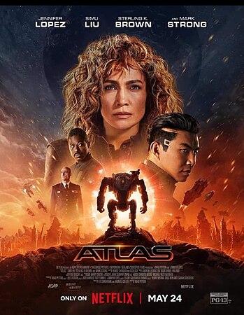 Атлас [Atlas] – научно-фантастический боевик. Главная роль и продюсер Дженнифер Лопес. Она играет высококвалифицированного аналитика по борьбе с терроризмом по имени Атлас, которая скептически относится к искусственному интеллекту и понимает, что он может стать ее единственным спасением после провала миссии по поимке робота-нарушителя. Фильм неплохой. Выпущен Netflix. Фильм имел успех на Netflix, попав в топ-10 платформы в 93 странах, включая первое место в 71 из них. Бюджет $100 млн.