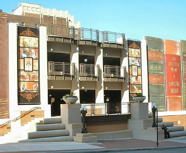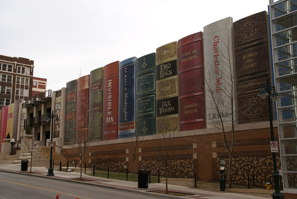 Библиотека в Канзас-Сити начала свою работу в 1873 году. За свое почти полуторавековое существование она сменила 4 адреса и соответственно ее фонды 3 раз переезжали в новые здания. По фотографиям видно как корпуса становятся все больше и больше, как меняется архитектура. История последнего здания началась в конце восьмидесятых, когда стало ясно, что книг и посетителей становится слишком много для предыдущего здания открытого в 1960 голу. Новый проект потребовал около 50 миллионов долларов, которые были получены от федерального правительства, бюджета штата, муниципального бюджета, пожертвований различных фондов, корпорация и частных лиц. Построенное здание открыло свои двери для посетителей в 2004 году. Сейчас в библиотеке почти два с половиной миллионов книг, CD и других аудио- и видеоносителей. Ну а с тем, как выглядит здание, Вы можете ознакомиться сами по фотографиям.