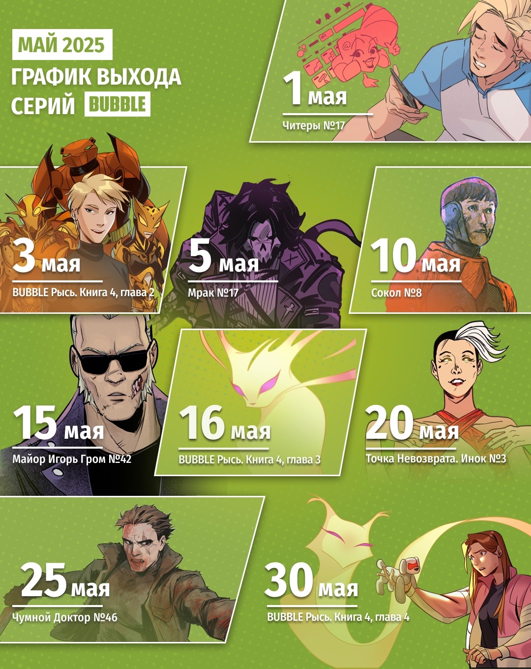 А, это были сценарист Евгений Еронин, художник Валентин Поткин и колористка Анна Антощенкова! Вас ждут невероятные приключения, безумные камео из самых разных серий BUBBLE, экшн и немного хоррора! В продаже совсем скоро! Ауф wiedersehen!