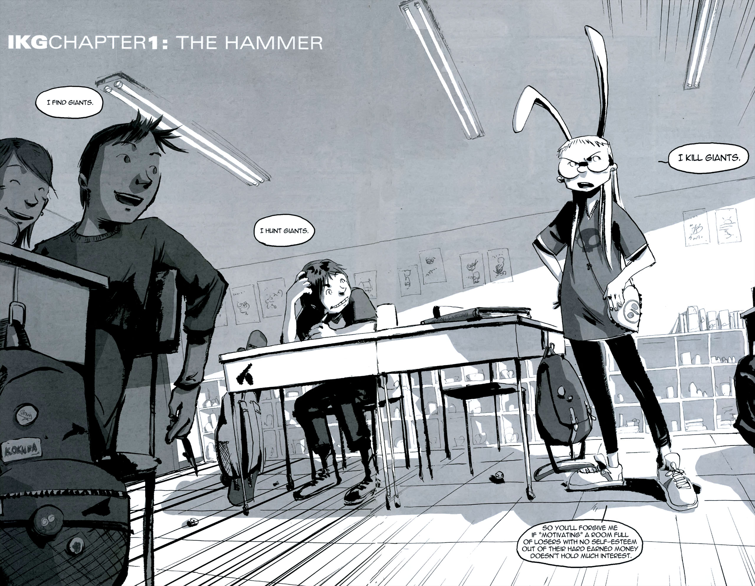 Дж. М. Кен Ниимура был дебютантом, во время работы над “I Kill Giants”. И надо сказать, выдал очень хорошую работу, как для новичка. В его арте чувствуется вдохновение мангой (в конце концов, японец он или где?), но к счастью, без характерных для этого стиля здоровенных глазищ (да, я признаюсь, именно из-за этого мимо меня проходит практически все, что делают японцы). Его работу, не назовешь безупречной, и рисунок довольно простоват, но он прекрасно подходит к истории, и просто великолепен, когда дело доходит до отображения видений и разных монстров.