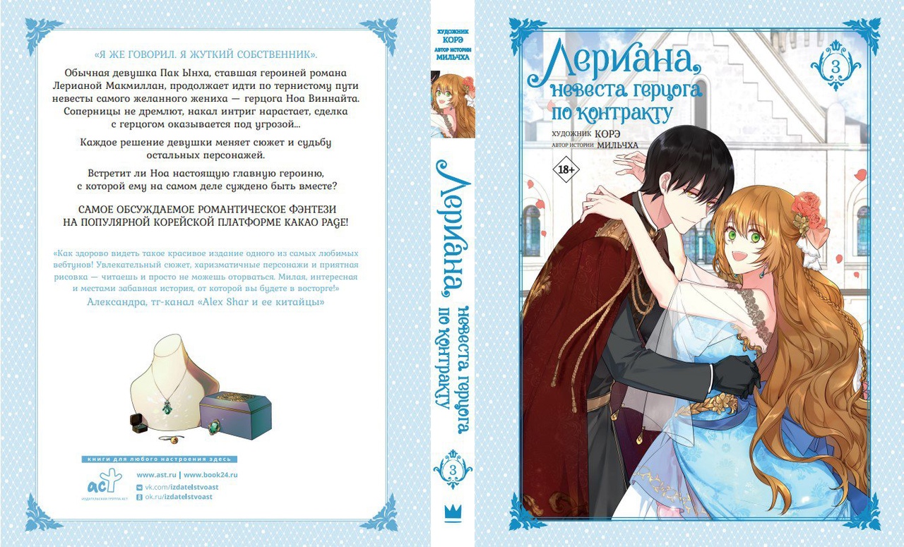 В следующем месяце издательство "АСТ" планирует выпустить «Лериана, невеста герцога по контракту. Том 3»