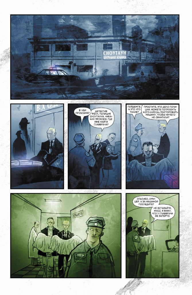 В наше издание входят все 9 существующих глав Fell. Также в книгу вошли дополнения с комментариями Уоррена Эллиса.
