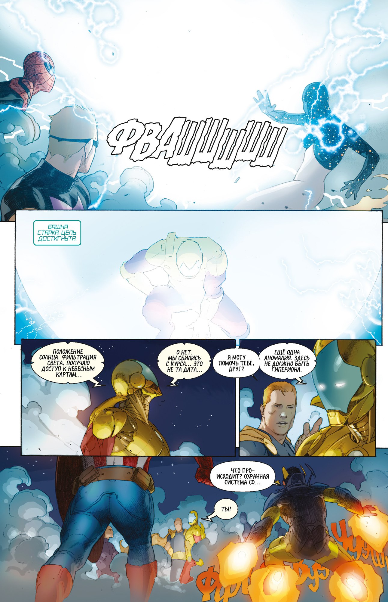 Джонатан Хикман не сбавляет обороты и продолжает с помощью Мстителей править всю судьбу вселенной Marvel. В четвертом томе основным художником выступил Сальвадор Ларрока, знакомый многим по работе над серией "Железный Человек", а еще ему немного помогли Эсад Рибич ("Тор: Бог Грома") и Майк Деодато ("Громовержцы").