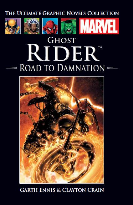 58) «Призрачный Гонщик. Дорога к проклятию». 160 стр. Внутри: Ghost Rider: Road to Damnation # 1-6. Сценарий – Гарт Эннис, рисунок – Клейтон Крэйн. Призрачный Гонщик угодил в ад. И когда загадочный посланник небес предлагает ему сделку, в результате которой он вновь сможет вернуться в мир живых, тот, не раздумывая, соглашается. Дополнительные материалы: история Призрачного Гонщика, биография художника и галерея обложек.