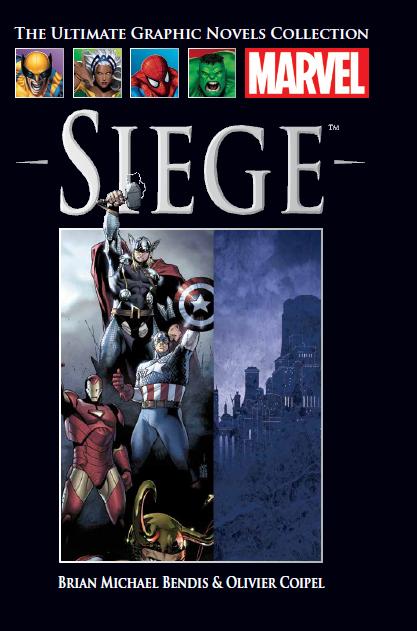 60) «Осада». 168 стр. Внутри: Siege # 1-4, Siege: The Cabal. Сценарий – Брайан Майкл Бендис, рисунок: Оливье Койпель и Майкл Ларк. Глобальное комикс-событие, которое полностью изменило расстановку сил во вселенной Marvel. Дополнительные материалы: история Нормана Озборна и галерея обложек.