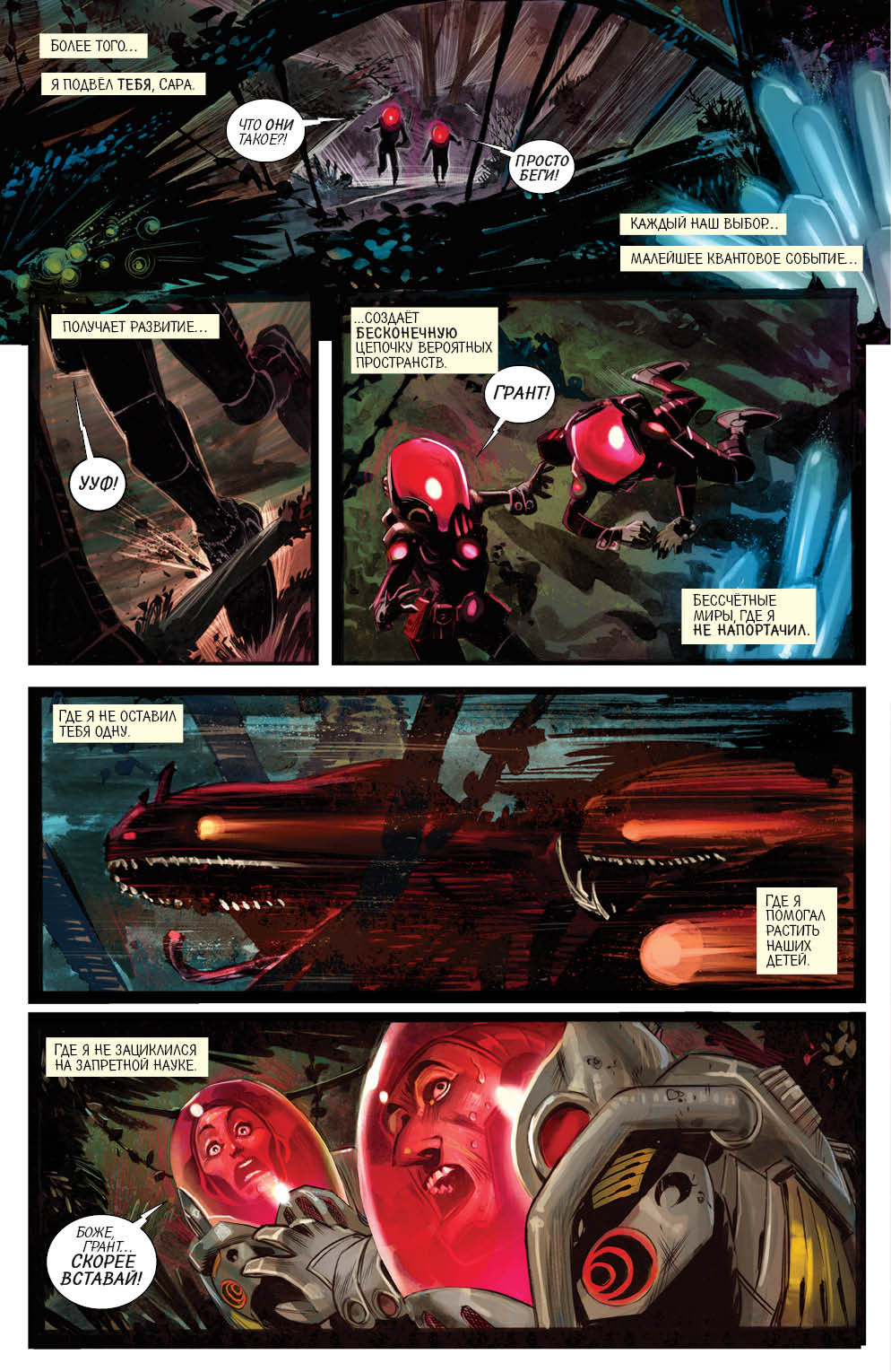 На этом комиксе фантазия Моррисона сумела разгуляться не на шутку, а Куайтли мастерски превратил печатные строки в ошеломляющий, богатый деталями рисунок.
