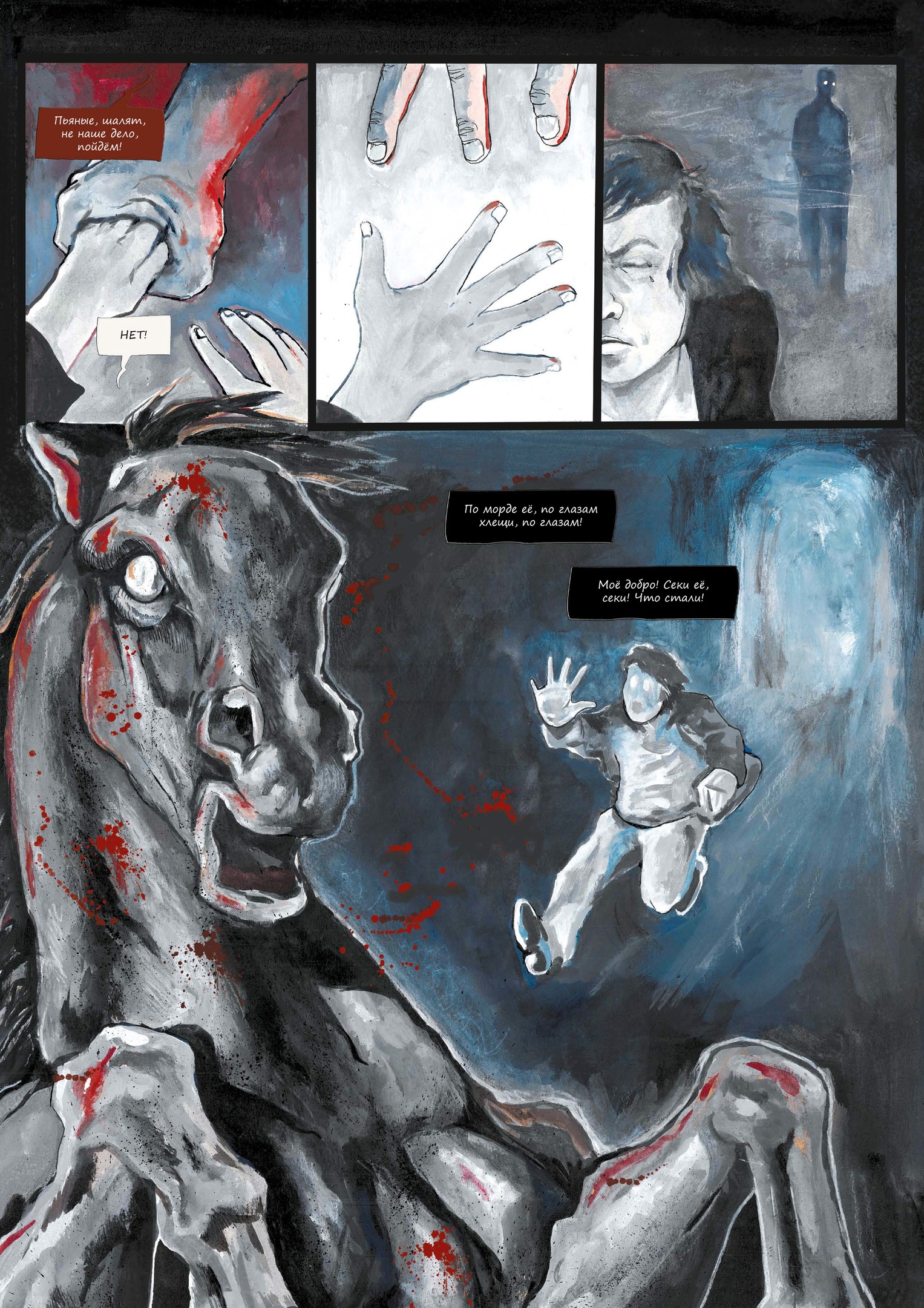 В сборнике не могло не найтись место для такого потрясающего автора и художника как Александр Зеленков, мы уже издали его «Вещь покойника», он нарисовал для нас шикарного «Хамелеона», ну а грядущую книгу украсит другой комикс автора. Если вам понравилась «Вещь», то не пропустите и «Белый отрез», это еще одна деревенская история с налетом мистики, ну а потрясающий рисунок Александра никуда не делся!