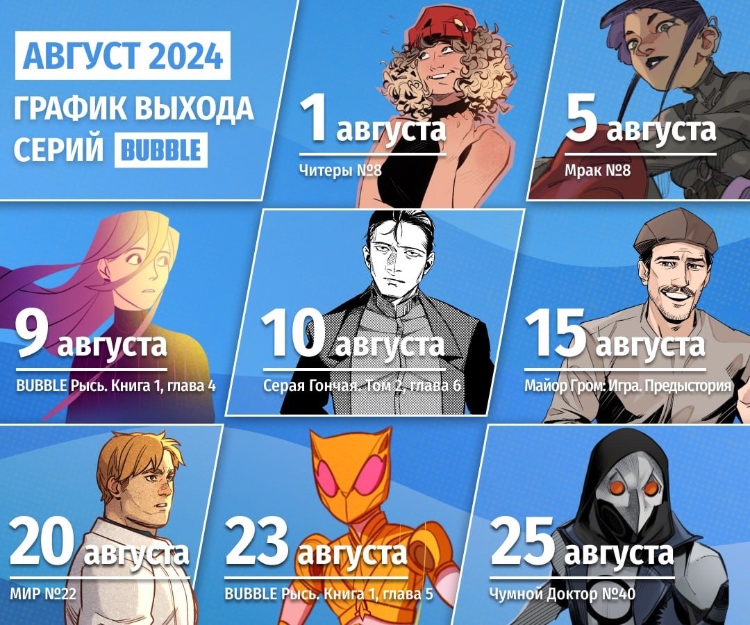 Расписание выхода новинок от "Bubble" на сентябрь.