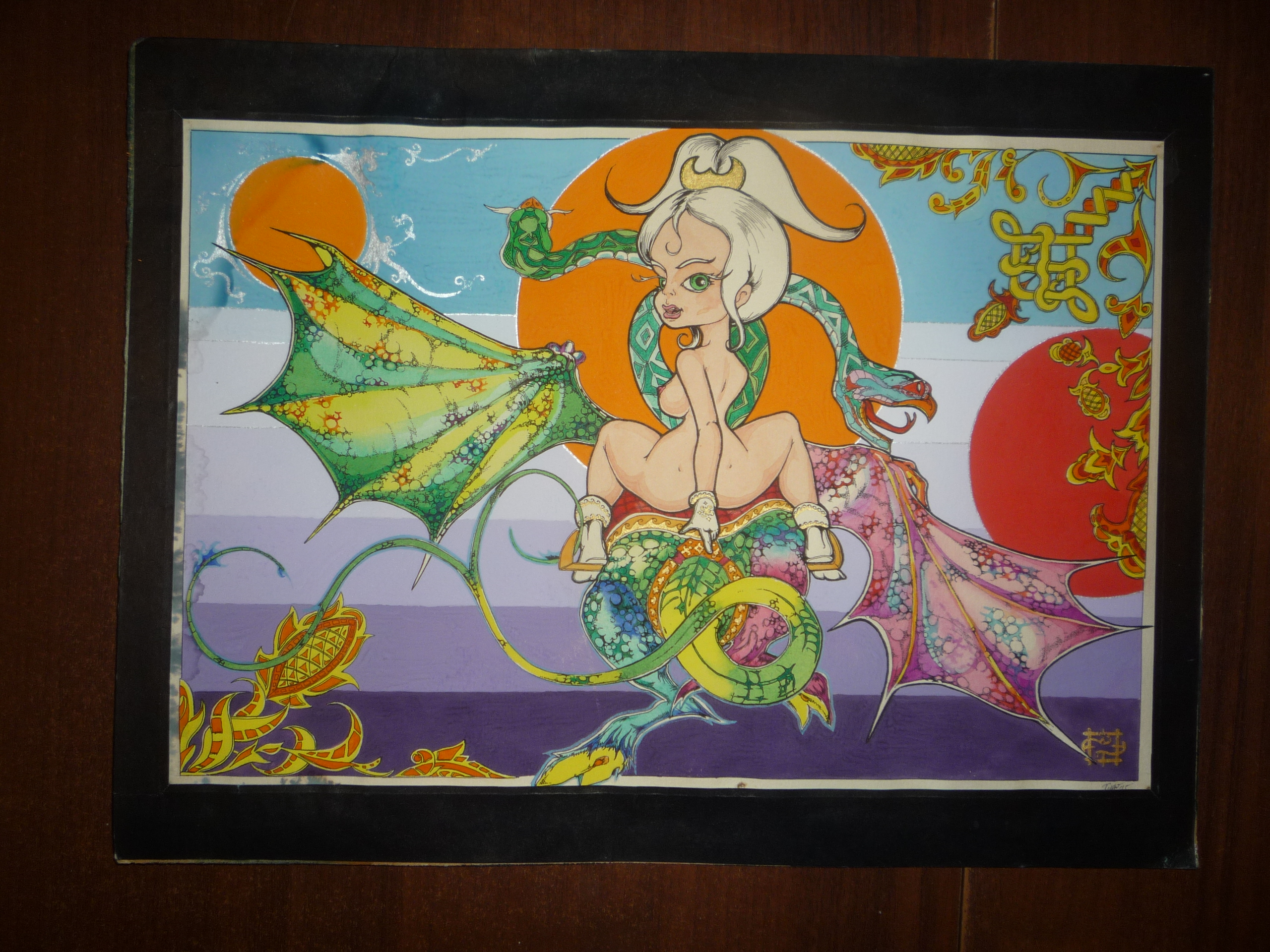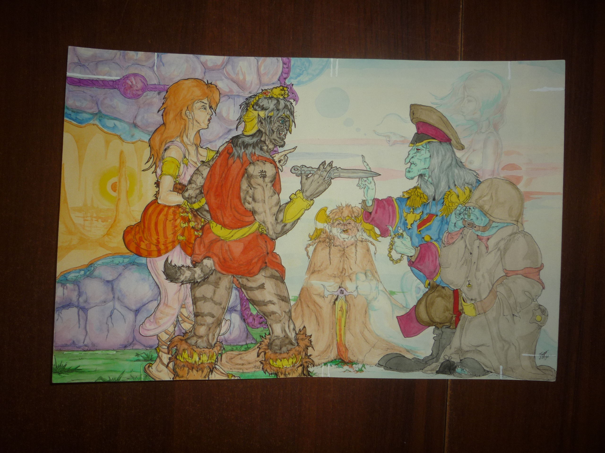 Обратите внимание, что при изготовлении книги от картинки отрезали немного сверху и снизу, а цветопередача стала более тёмной, например голубые волосы превратились в тёмно-фиолетовые