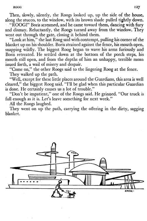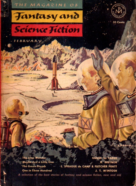 (Обложка журнала с рассказом "Рууг". Журнал F&SF выбивался из всех фантастических журналов не только отменным литературным вкусом. В отличии от Гэлакси и Эмейзинг, в этом журнале ... практически не было внутренних иллюстраций. Тем не менее к "Руугу" есть заглушка — небольшая картиночка, подверстывающаяся в финале, причем нарисовал ее Эд Эмшвиллер, в том году уже получивший свою первую премию Хьюго)