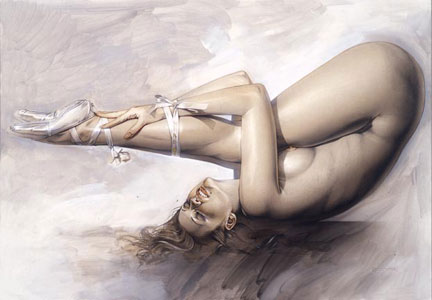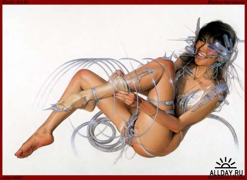 Японский живописец и иллюстратор создал свой оригинальный стиль — смешение механики и живой плоти, бионика, но в отличии от мрачноватого декадентского Гигера, прокуренного в барах Европы, работы Сороямы полны светлой энергетики и пронизаны чистым морским потоком воды и воздуха. Эдакий пляжный художник. Ну а раз пляж, значит полуголые тела и эротика.