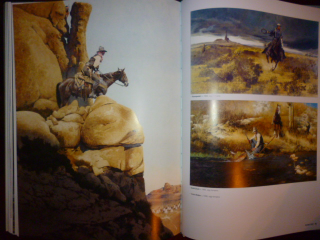 А это образцы иллюстраций к вестернам. Огромные полотна, на весь разворот книги