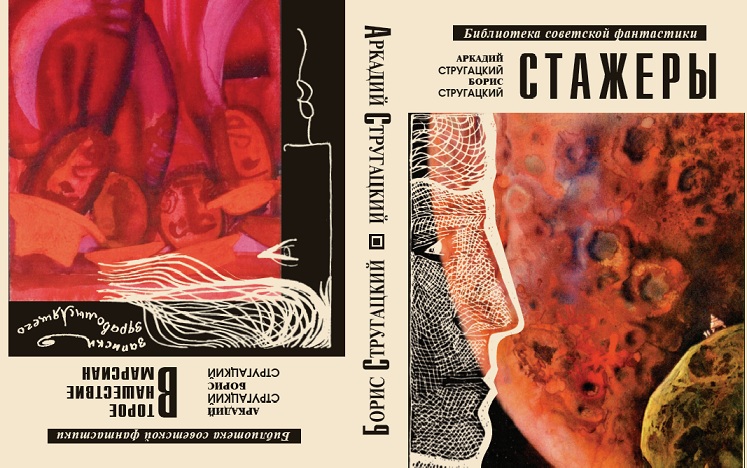 Сам Перкель пишет об определенном цветовом решении: "стажерская" часть супера — зеленая. Я попробовал перетонировать планеты в холодные тона, но результат явно хуже. Т.к. две цветные картинки, это, все-таки работы разных художников – будет уместнее сблизить их в плане цвета. Это в оригинальной работе — контрапункт и противопоставление двух заметно отличающихся романов, а мне нужно нивелировать разницу в иллюстрациях. Так что пусть обе обложки будут черно-красные, с белой графической прорисовкой поверх. Одно цветовое и композиционное решение, но совершенно разная стилистика.