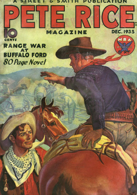 В 1925 году Баумхофер начал рисовать иллюстрации в журнал "Adventure", преподаватель в институте сказал что можно дальше не учиться, раз дела пошли хорошо, и через год Баумхоферу уже доверили делать цветные обложки. Обложка для журнала "Danger Trail" — по-видимому, первый его ковер: