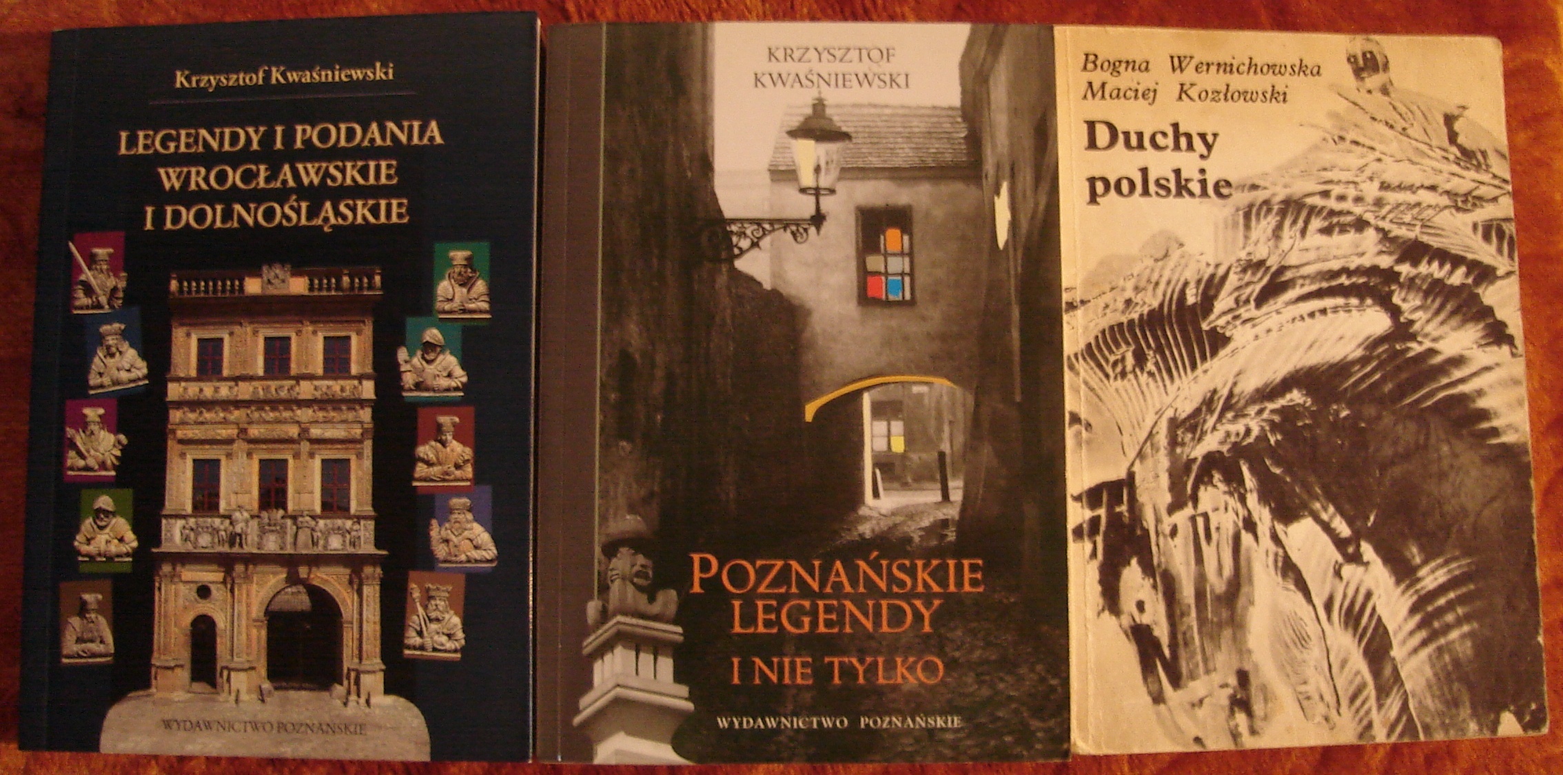 Три томика по легендам и преданиям. Тот, что справа, -- выловлен на блошином рынке за пять злотых. Он чуть менее академичен, чем два других, отчасти заточен под туризм, -- но...