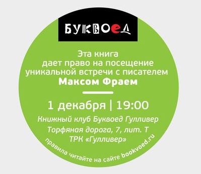 Входным билетом на встречу является любая книга писателя Макса Фрая, изданная в издательстве АСТ, со специальной наклейкой на обложке.