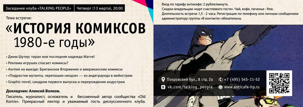 Докладчик: Алексей Волков. Писатель, журналист, основатель и бессменный автор сообщества "Old Komix". Прекрасный лектор и уважаемый гость дискуссионного клуба.