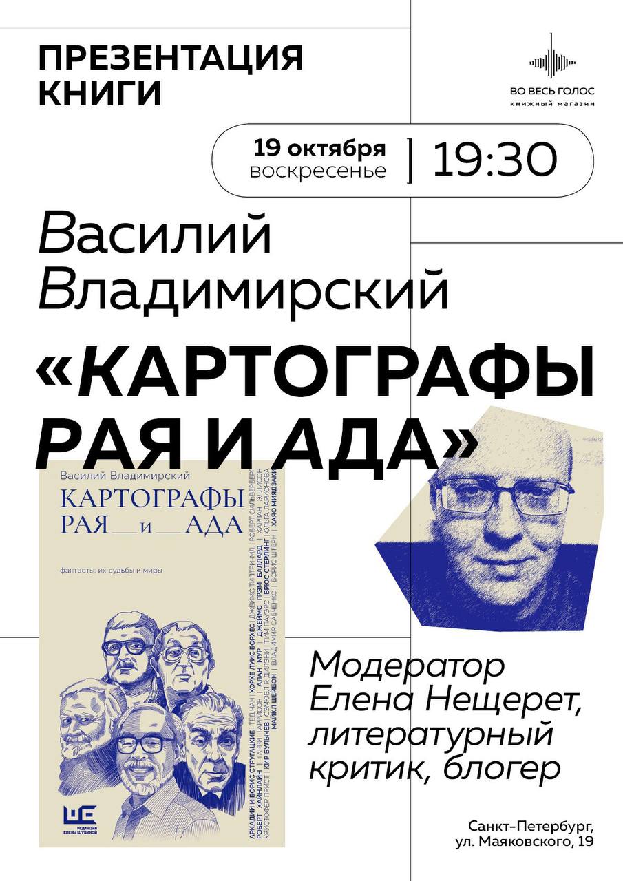 Приглашаем вас 19 октября (воскресенье) в 19:30 на презентацию новой книги Василия Владимирского «Картографы рая и ада».