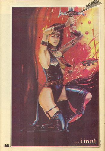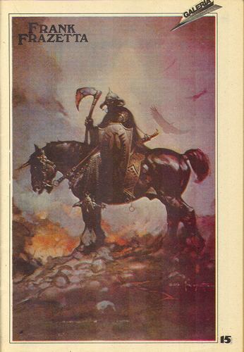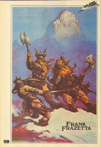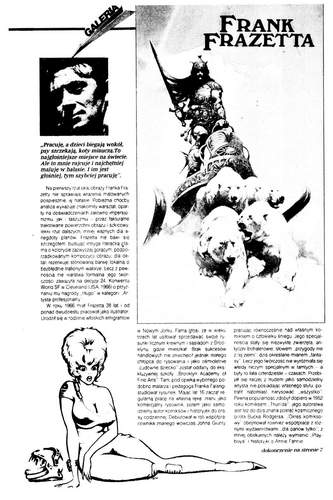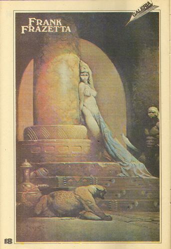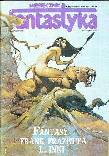 Четвертый номер журнала «Fantastyka» за 1987 год делает та же команда, которая делала предыдущий номер. Адрес тот же, те же два телефонных номера. Объем журнала, бумага, типография – те же. Tираж журнала не изменился -- 150 тысяч экземпляров. «Галерея» носит название «Frank Frazetta… i inne/Франк Фразетта… и другие». То есть на передней обложке, а также на внутренней ее стороне и на страницах 7, 15, 18, 47, 50 публикуется подборка репродукций работ знаменитого американского художника ФРАНКА ФРАЗЕТТЫ/Frank Frazetta, однако в «Галерее» предоставлено также немного места и польским художникам, работающим в том же стиле: ЛЕШЕКУ ЛИПЕЦКОМУ/Leszek Lipecki (стр. 9), и ЯКУБУ КУЖМЕ/Jakub Kużma (стр. 10). Задняя страница обложки журнала – обложка повести Ф. Пола «Венерианские купцы», публикующейся в этом номере.