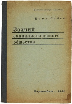«В 1933 году Радек в свойственной ему блестящей литературной манере написал небольшую книжку под названием ”Зодчий социалистического общества”. Он совершил в ней фантастический скачок в будущее и, как бы глядя оттуда глазами грядущих поколений, изобразил ретроспективно образ Сталина. Эта весьма оригинальная работа была написана Радеком в форме лекции, которую будто бы читает в начале последней трети XX века <в 1967 году. W.> некий знаменитый историк <в школе межпланетных сообщений. W.>. Лекция посвящена великому Сталину — гению, который преобразовал человеческое общество.
