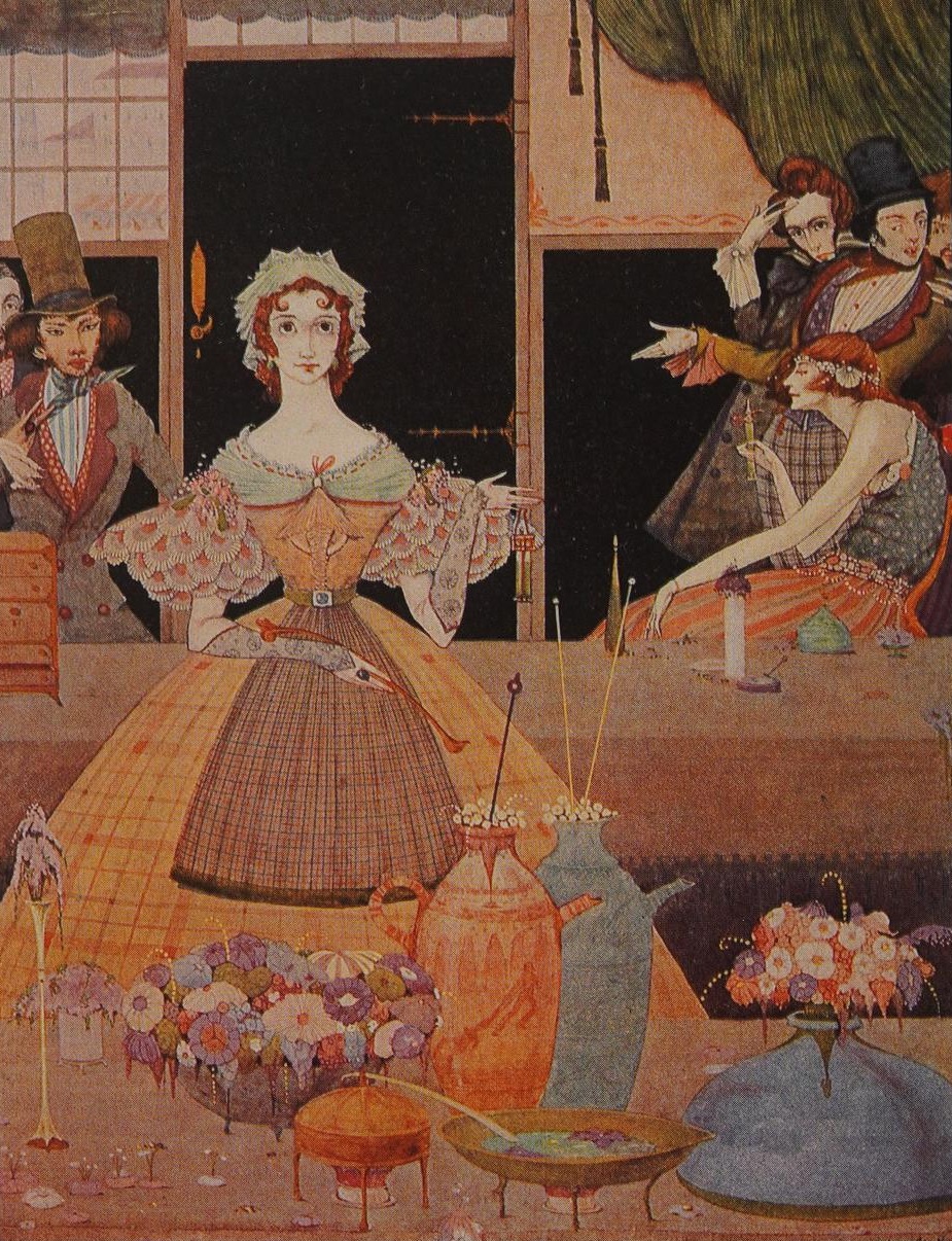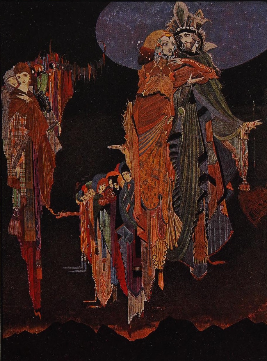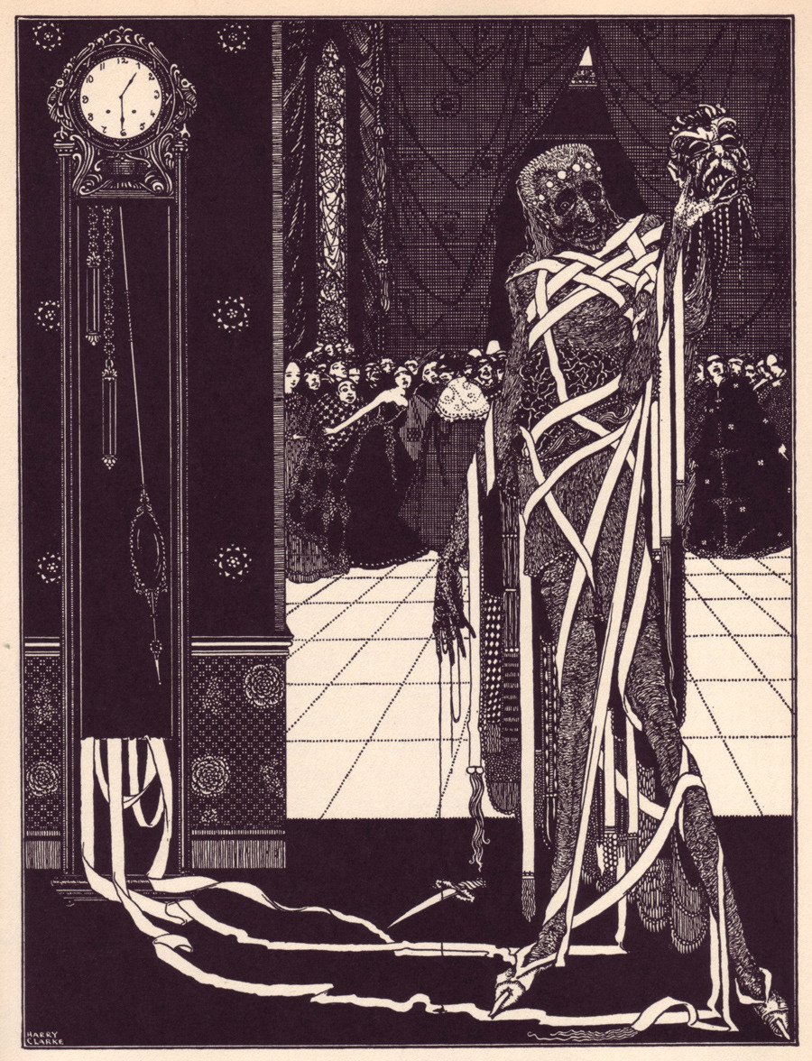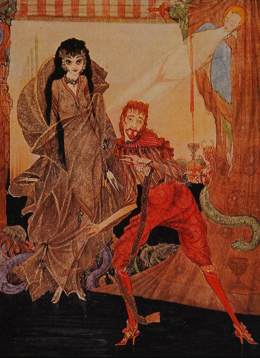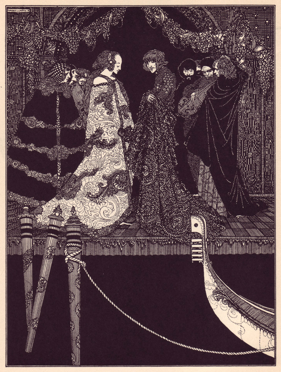А именно -- прекрасные иллюстрации ирландского художника ГАРРИ КЛАРКА (Henry Patrick “Harry” Clarke) из сборника рассказов Эдгара Аллана По «Рассказы тайны и воображения» (“Tales of Mystery and Imagination”), опубликованного в 1923 году издательством “George G. Harrap & Co”. Первое издание этой книги 1919 года содержало 24 монохромные иллюстрации, которые во втором издании были дополнены 8-ю цветными.