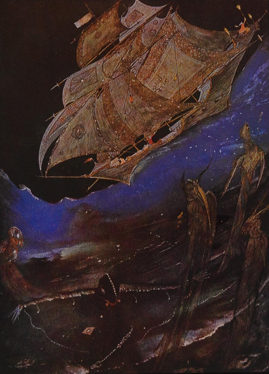 И вот теперь я хочу показать иллюстрации к другому изданию «Рассказов о тайне и воображении» -- 1935 года, которое также было опубликовано издательством “George G. Harrap & Co”. На этот раз за иллюстрации отвечал АРТУР РЭКХЕМ (РЭКЕМ) (Arthur Rackham).
