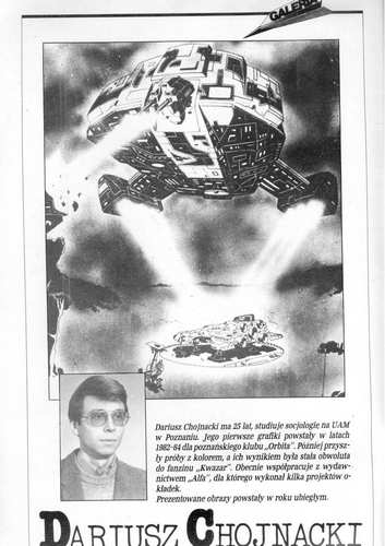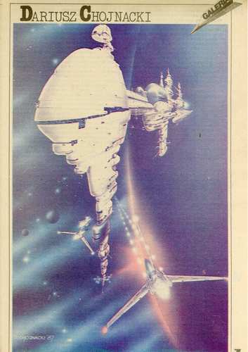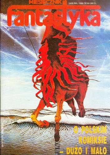 Пятый номер 1988 года делают те же люди. А вот тираж журнала снизился – 167 тысяч экземпляров. На передней обложке использована репродукция работы польского художника МИРОСЛАВА ГОЛËНДЗИНОВСКОГО/Miroslaw Golądzinowski. В «Галерее» в этом номере снова (во второй раз – по просьбам читателей; вот только когда, интересно, редакторы успели их выслушать) представлены репродукции работ замечательного английского художника ПАТРИКА ВУДРОФФА/Patric Woodroffe (стр. 7, 10, 16, 18, 48, внешняя сторона задней обложки). И вновь напоминаю: в Сети есть репродукции гораздо более высокого качества – например, такие, как на последних двух иллюстрациях. На внутренней стороне передней обложки – оглашение условий III литературного конкурса. Этот конкурс задуман в помощь отпочковавшемуся от «Фантастыки» журналу для юных читателей «Mala Fantastyka», почему и носит название «Duża dla Małej/Большая для Малой». На внутренней стороне задней обложки – коллаж из кадров польского фильма «Kingsajz», иллюстрирующих размещенную рядом (на стр. 64) рецензию на фильм.