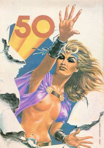 Одиннадцатый (юбилейный, бо ПЯТИДЕСЯТЫЙ!) номер четвертого подписного года журнала «Fantastyka» делает та же команда, которая делала предыдущий номер. Адрес тот же, те же два телефонных номера. Объем журнала, бумага, типография – те же. Tираж журнала не изменился -- 150 тысяч экземпляров. Автор передней стороны обложки – МАРЕК ЗАЛЕЙСКИЙ/Marek Zalejski (виньетка АНДЖЕЯ БЖЕЗИЦКОГО/Andrzej Brzezicki). На задней обложке работа ЕЖИ ВРУБЛЕВСКОГО/Jerzy Wróblewski – автора незабвенной «княжны» с передней страницы обложки самого первого номера журнала. Поскольку номер юбилейный, редакция журнала предоставила возможность выступить в «Галерее» тем художникам, чьи имена чаще других назывались в письмах читателей. Итак, на стр. 7 – работа ГЖЕГОЖА КОМОРОВСКОГО/Grzegorz Komorowski, на стр.10 – МИРОСЛАВА ГОЛЕНДЗИНОВСКОГО/Mirosław Golędzinowski, на стр. 15 – ПЕТРА КУНЦЕ/Piotr Kunze, на стр. 16 – АНДЖЕЯ БЖЕЗИЦКОГО/Andrzej Brzezicki, на стр. 47 – ВОЙТЕКА СЮДМАКА/Wojtek Siudmak, на стр. 50 – ЛИДИИ и ВИТОЛЬДА ПОПЕЛЬ/Lidia & Witold Popiel, на стр. 53 – БОГУСЛАВА КОСТИ/Bogusław Kostia. На внутренней стороне задней обложки весьма реалистично (или лучше сказать – натуралистично?) изображена сцена шабаша редакционного коллектива «Фантастыки», учиненного по указанному поводу (худ. А.О. НОВАКОВСКИЙ/A. O. Nowakowski).