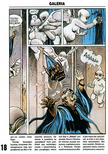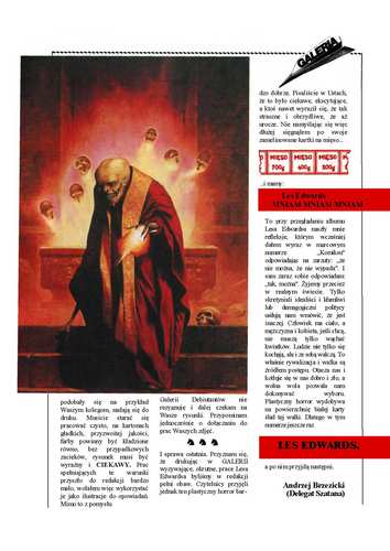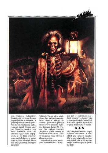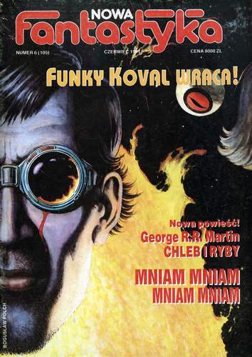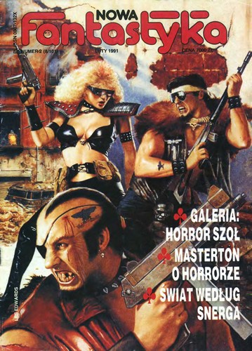 Ну что ж, мы с вами отважно переступаем порог и начинаем углубляться во вторую сотню журнальных тетрадок. В редакционной команде, сотворившей февральский номер 1991 года (8-й «Новой Фантастыки» и 101-й, если считать ab ovo), наблюдаются некоторые изменения. Вышел из ее состава (и пополнил ряд постоянных сотрудников) Дарослав Ежи Торунь. В должности заведующего иностранным отделом его сменила Дорота Малиновская, которая прежде занималась (и продолжит заниматься) кино. Постоянными сотрудниками указаны также Мацей Иловецкий, Аркадиуш Наконечник, Анджей Невядовский, Karburator, Negocjator, Predator и Sekator. Тираж – 120 тысяч экземпляров. Большая часть материалов номера посвящена такому ответвлению жанра, как ужасы (HORROR), что можно заметить уже по оформлению передней обложки, где использованы мотивы работ английского художника ЛЕСА ЭДВАРДСА/Les Edwards. Другие его работы, которые я показываю здесь с некоторым душевным беспокойством и даже трепетом, представлены под многозначительным названием «Ням-ням» в «Галерее» -- на внутренних сторонах передней и задней обложек, а также на страницах 17, 18, 19, 20, 53, 54, 55, 56. На задней обложке напечатана реклама польского издательства «CIA-BOOKS», снабженная списком его продукции, планируемой к выпуску в ближайшем полугодии. Кстати, более половины книг иностранных авторов, указанных в списке, до сих пор не переведено на русский язык.
