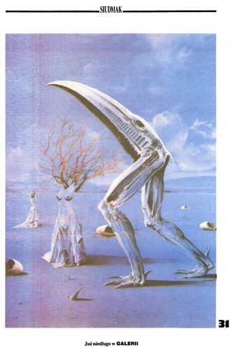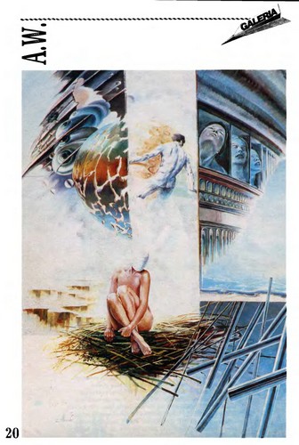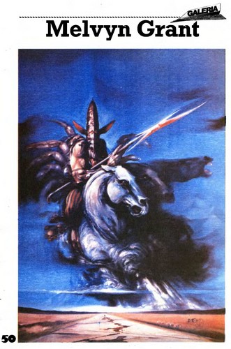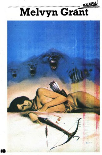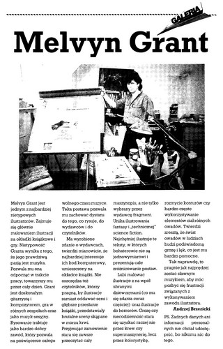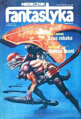 Экономический кризис в Польше углублялся. Рвались устоявшиеся хозяйственные связи, обострялись проблемы с нехваткой бумаги, печатью тиража… да и с распространением журнала тоже. Предыдущий номер был последним, который пришел автору этих строк по почтовой подписке. Хотя подписка была оформлена на год (или полгода? – уже не помню), ее прервали, деньги вернули. Кое-какие из последующих номеров журнала удалось позже добыть частным образом, но не все, далеко не все… А редакционный коллектив тем временем делал все возможное, чтобы выжить в тяжелых и все ухудшавшихся условиях. Этот номер был сдвоенным – № 4-5 (91-92), но без увеличения объема – все те же 64 страницы. Тираж журнала – 120 тысяч экземпляров. В «Галерее» в этом номере представлен своими работами художник МЕЛВИН ГРАНТ, специализировавшийся на оформлении обложек книг и игр. Иллюстрации его работ расположены на передней и задней обложках и на стр. 7, 10, 16, 18, 47, 50.
