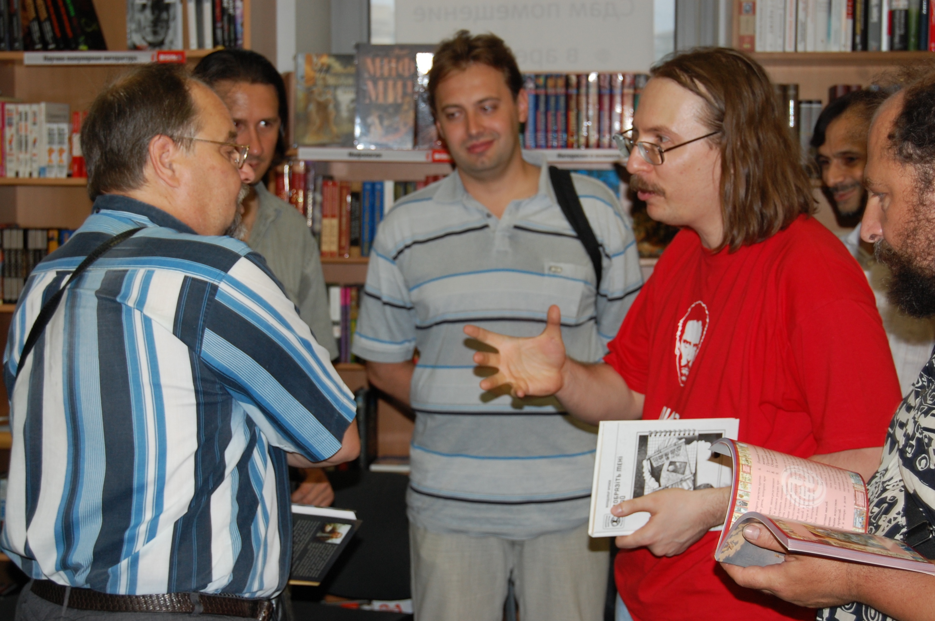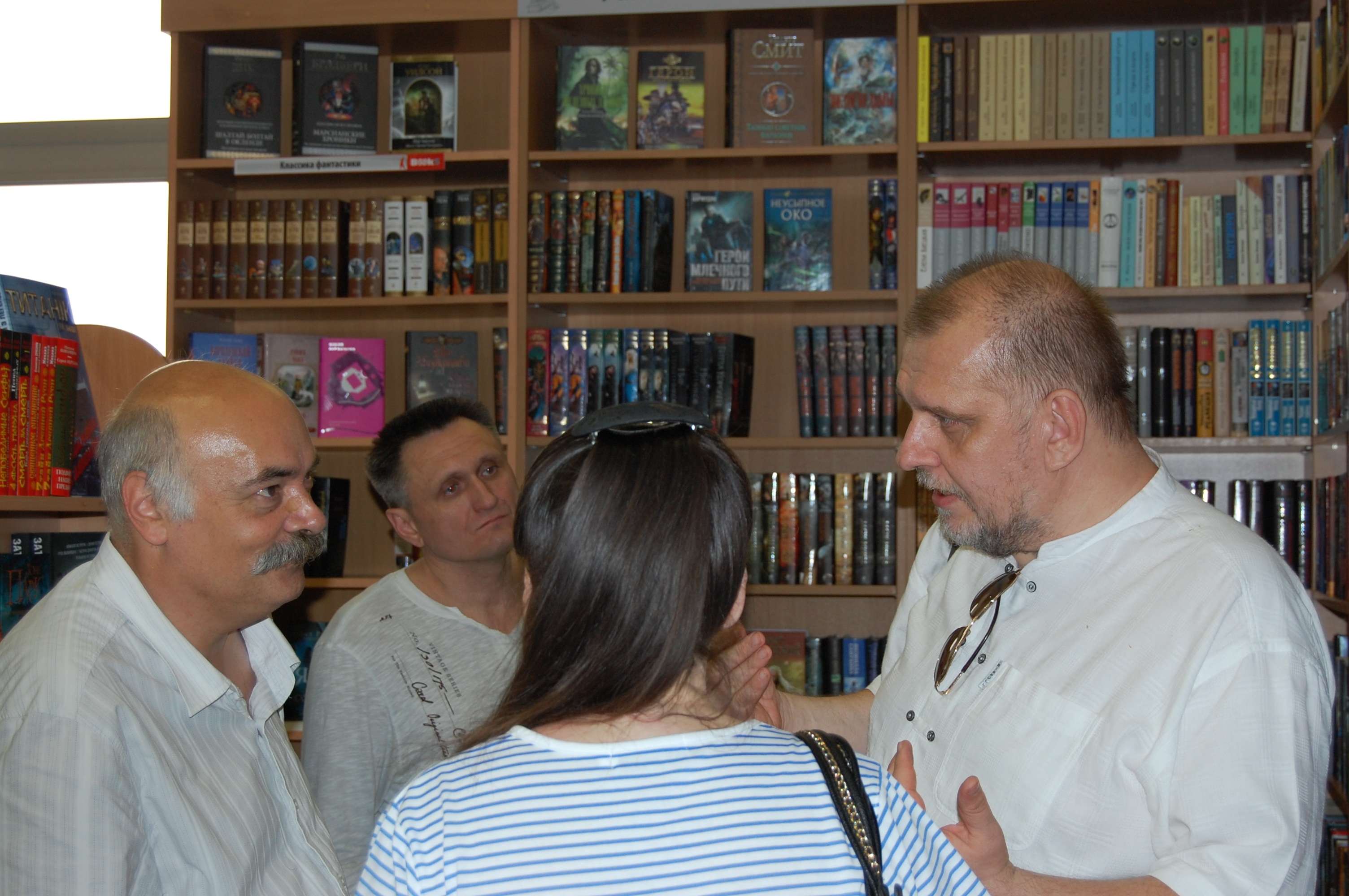 В общем, всё это дело из презентации стремительно превратилось в мини-конвент: слово брали харьковчане Андрей Валентинов, Борис Георгиев, Александр Золотько, Григорий Панченко, Фёдор Чешко... но и простые посетители высказывались, даже продавщицы включились в дискуссию.