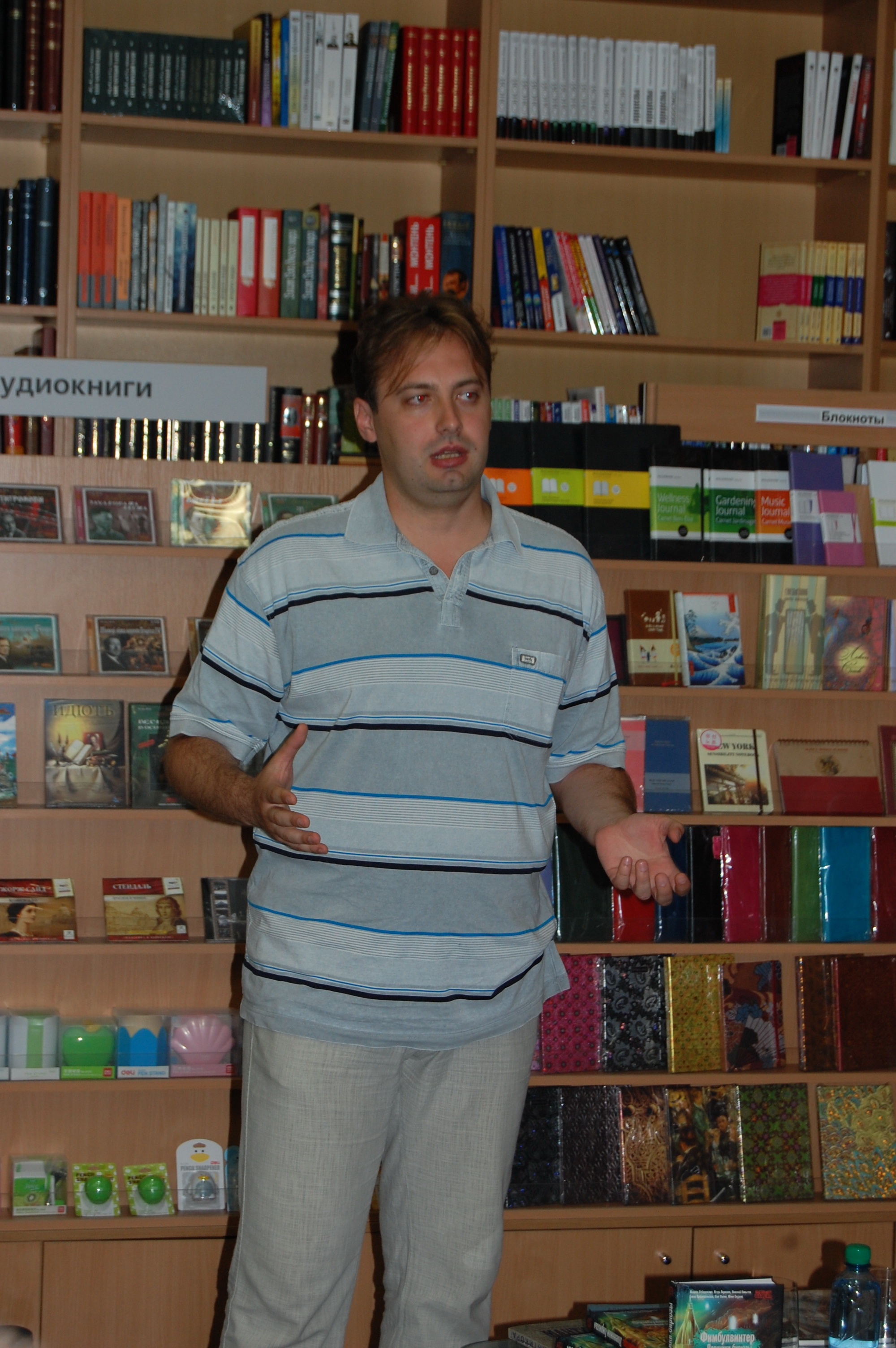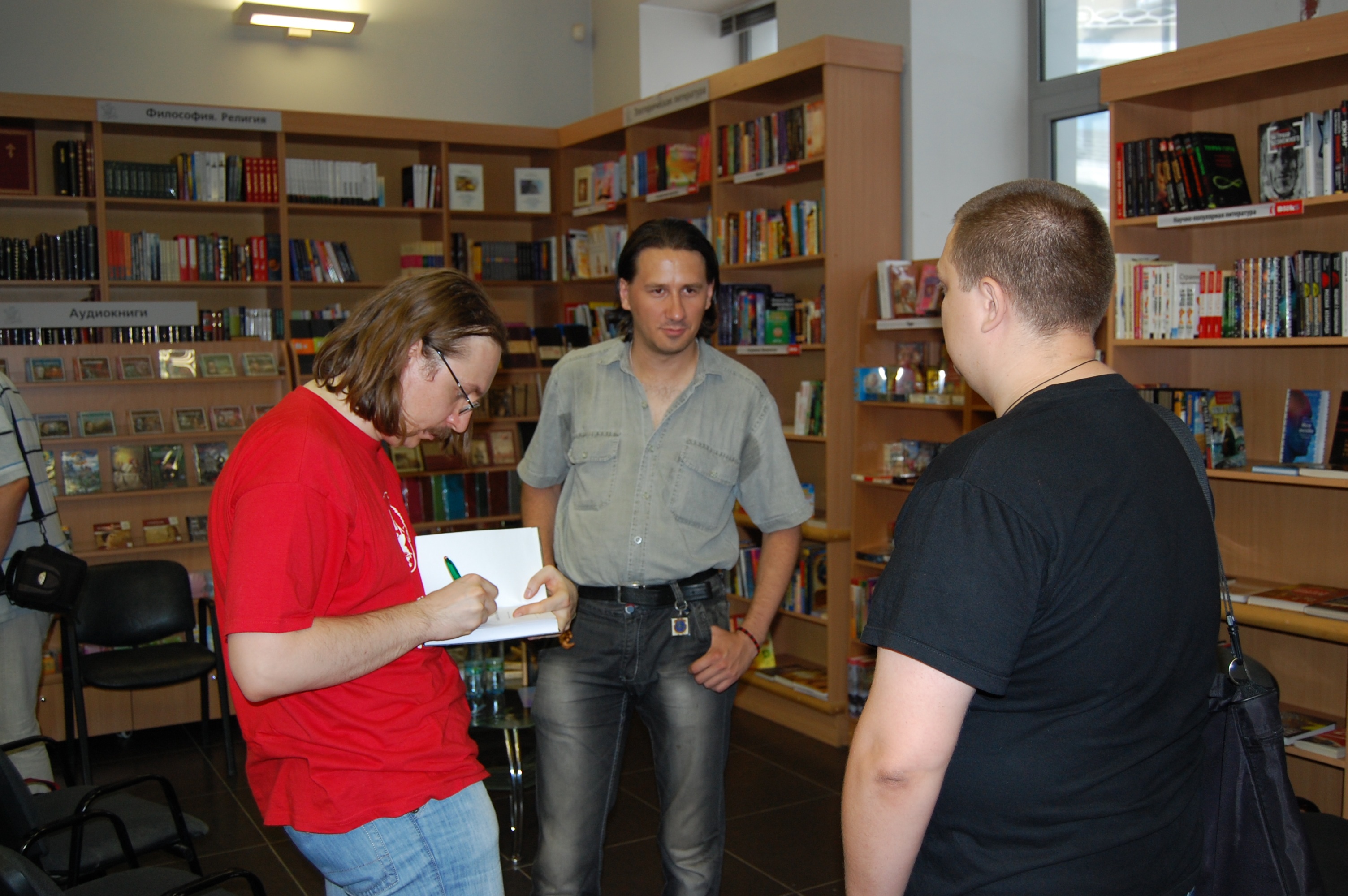 Там встреча прошла в магазине "Books" на Сумской. Посетителям "Звёздного моста" он, в принципе, знаком: там и прежде проводились подобные встречи. Гостей было на удивление много, хотя в основном все свои, коллеги-фантасты, фантлабовцы.